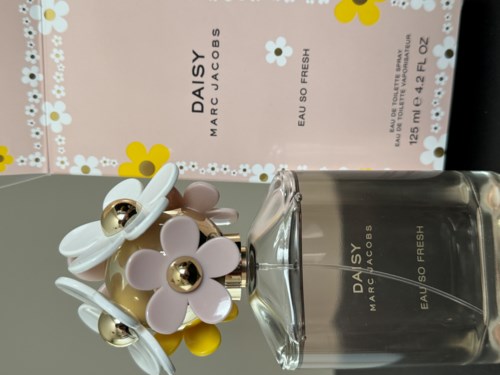 Livlig, sjarmerende og uforutsigbar. Daisy Eau So Fresh er en ny spirituell versjon av orginialduften Daisy. Den forflytter deg til en plass som minner om glede, sommer og sprer en ungdommelig følelse av enkelhet og friskhet. Den er lysende, elegant og full av sjarm. La deg fanges på en eng med blomster sammens med Daisy Eau So Fresh.