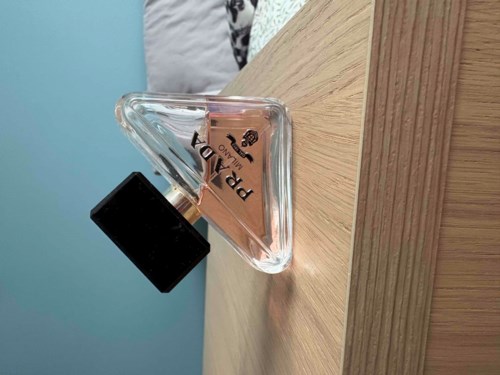 Paradoxe refillflasken representerer selve essensen av Prada og fornyer varemerkets mest ikoniske kode: den trekantede logoen. Skråstilt, men plantet på jorden blir den radikale formen på flasken gjort mykere av avrundede vinkler, mens den delikate korallfargen står i kontrast til den dype svarte korken og Pradas logo.