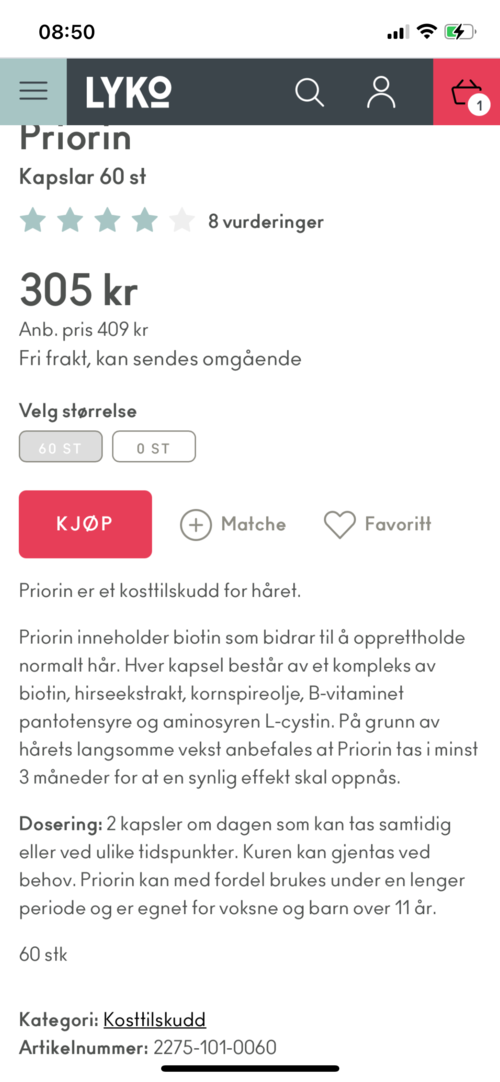 Jeg var litt skeptisk til hårsupplementer før jeg prøvde ut denne, men ble positivt overrasket. Jeg merker stor forskjell. Da jeg børstet håret mitt før var det alltid masse hår igjen på børsten, men etter at jeg begynte på Priorin er det nesten ingenting. Folk rundt meg har kommentert det og frisøren min ser stor forskjell. Jeg har fått flere til å begynne på det, og de merker også stor forskjell. Nå går jeg på Priorin fast. #lykoreview1 produkt i posten Fungerer ordentlig godt!2786 visninger - Innlegget ble opprettet 6 månederVurdering: 5 av 5Verifisert kjøper