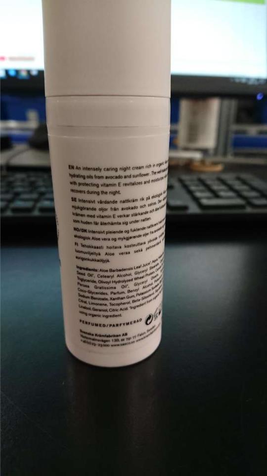Intensivt pleiende nattkrem rik på økologisk Aloe Vera og mykgjørende oljer fra avokado og solsikke. Den velbalanserte kremen med vitamin E virker styrkende og fuktighetsgivende samtidig som huden får innhentet seg i løpet av natten.