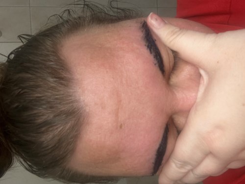 Påfør forsiktig barrierekrem rundt øyenbrynene for å hjelpe til med å forhindre flekker på huden