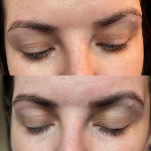 Påfør forsiktig barrierekrem rundt øyenbrynene for å hjelpe til med å forhindre flekker på huden