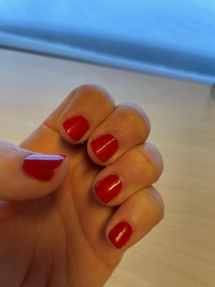 Jeg skriver aldri vurdering av produkter men denne lakken fortjener det! Det er som å bruke vanlig neglelakk kun med tørking under lampa - 2 minutter base coat, 2 minutter farge, 2 minutter andre lag med farge og 3 minutter top coat. Så gjentar man på andre hånd. Lampa har to knapper, som er forhåndsinnstilt på enten 2 eller tre minutter. Der står det «base/farge» og «topp». Jeg kjenner ikke at noen kan ta feil… Nedtelling er fra 60 til null to eller tre ganger uten at man må gjøre noe. Bare sitte og vente :-) Konsistensen på lakken er som vanlig lakk. Jeg har lest at det kan bli litt tjukkere men det finnes en thinner fra Manucurist som kan da brukes til dette. Jeg har ikke prøvd den enda. Etter omtrent 20 minutter (18 minutter under lampa) inkludert selve påføring av alle lag var alle neglene tørre og jeg kunne gå føne håret mitt og legge meg uten å tenke på negler. Jeg har hatt den kun i tre dager så vet ikke enda hvor lenge den sitter. Men hele prosessen var like enkelt som vanlig neglelakk men med betydelig raskere tørketid! 👍 Det er greit å si at selv om jeg har brukt neglelakk i mange år, er jeg ingen ekspert og orker ikke å bruke masse tid på prepping osv. Eneste som jeg har gjort var å bruke neglelakkfjerner fra Manucurist først for å være sikker at neglene var helt rene. Dette står også i bruksanvisning. Anbefaler på det sterkeste! ❤️1 produkt i posten Helt topp!!! - Innlegget ble opprettet 2 årVurdering: 3 av 5Verifisert kjøper