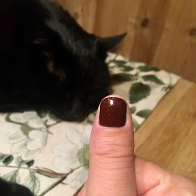 Denne neglelakken er fantastisk fin, tørker fort og varer lenge. Jeg opplevde noe plunder med kost/påføring og veldig sterk lukt av selve lakken, men dette er ikke noe som trekker ned helhetsinntrykket. Kjøpte fargen "YALE - Pearly Chocolate", som er akkurat det; en skimrende, nydelig, sjokoladebrun farge. Sett mot min kullsvarte Mumrik i bakgrunnen <31 produkt i posten Helt nydelig!828 visninger