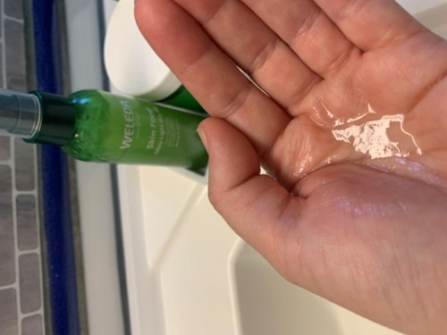 Denne tørr oljen har jeg ikke skjønt meg helt på. Sprayer på, bruker hende til å gni inn og poff så er olje følelsen borte. Den gir litt glans og glød men føler det forsvinner fort. For meg så føler jeg den funker best i ansiktet, der holder gløden seg, men på armer og bein så blir den borte nesten med engang. Gir en fin glød under sminken, så kommer til å bruke den mest i ansiktet fremover. Elsker lukten som alle andre lukter fra Weleda. #LYKOINFLUTESTER #WELEDA