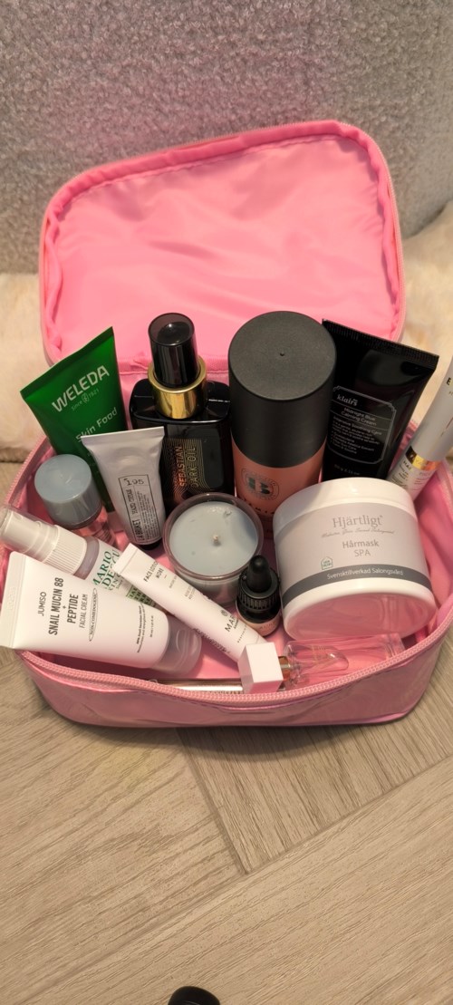 Jest to mój pierwszy box jaki zamówiłam i skradł on moje serce! Różnorodność kosmetyków, produkty pełnowymiarowe jak i miniaturki, a to wszystko zapakowane w piękną różową kosmetyczkę. W boxie znalazły się takie produkty jak: •Cień do powiek w sticku od marki Isadora w odcieniu 41 Bronze Brown. Długotrwała i wodoodporna formuła idealnie nada się na codzień, nawet przy wrażliwych oczach, które lubią łzawic. Odcień Bronze Brown jest idealną opcją na delikatny codzienny makijaż dużym atutem są dodatkowe drobinki zawarte w sticku. Produkt otrzymujemy w wersji pełnowymiarowej. •Uniwersalny krem od marki Welda Skinfood o pojemności 75ml, jest zdecydowanie moim ulubieńcem z całego boxa. Ma on zbitą, gęstą konsystencję oraz intensywny ziołowy zapach. Możemy stosować go na ciało oraz twarz jeśli potrzebujemy silnego nawilżenia. Dla mnie idealny, aby nawilżyć suchą skórę na piętach czy łokciach. Efekt? Miękka i gładka skóra już po pierwszym użyciu! Produkt otrzymujemy w wersji pełnowymiarowej. •Maska do włosów od marki Hjärtligt o pojemności 100 ml. W składzie znajdziemy takie składniki jak: -Witaminę E -Witaminę A -Olej z nasion dzikiej róży -Organiczny olej rzepakowy -Olejek migdałowy -Ekologiczny ekstrakt karmelowy Nie miałam jeszcze okazji przetestować, jednak wyżej wymienione składki zachęcają do zrobienia sobie "domowego spa". Maskę możemy trzymać na włosach od 30 minut do 8 godzin ! Czy nie brzmi to zachęcająco? Z pewnością dodatkowym atutem jest fakt iż produkt jest całkowicie wolny od olejków eterycznych i substancji zapachowych. Produkt nie jest w wersji pełnowymiarowej. (Wersja pełnowymiarowa zawiera 175ml). •Krem do twarzy od koreańskiej marki Klairs - Midnight Blue Calming o gramaturze 60g. Jego niecodzienny niebieski odcień może nieco zadziwić, podobnie jak i działanie. Krem pomoże nam przy złagodzeniu podrażnień, nawilży, oraz przyspieszy odnowę komórek. Może być stosowany jako baza pod makijaż. Produkt otrzymujemy w wersji pełnowymiarowej. •Niepozorne maleństwo od marki Aurelia London - Cell Repair Night Oil w pojemności 4 ml. Jest to niewielka buteleczka z olejkiem na noc, którego możemy używać do masażu twarzy (tu gorąco polecam stosować z kamieniem gua sha). Jego zadaniem oprócz nawilżenia skóry jest odnowa komórek, oraz pozbycie się efektu zmęczonej skóry. Produkt otrzymujemy w wersji miniaturowej. (Pełnowymiarowy produkt zawiera 30ml olejku). •Krem do twarzy od Jumiso - Snail Mucin 88 + Peptide o pojemności 30 ml. Krem ma lekką konsystencję, która szybko się wchłania oraz dobrze się rozprowadza na skórze. Idealny do cery wrażliwej oraz podrażnionej, pomoże nam ukoić skórę oraz przyspieszyć jej regenerację. A do tego da nam efekt ujednolicenia oraz nawilżenia. Produkt otrzymujemy w wersji miniaturowej. (Pełnowymiarowa wersja zawiera 100ml kremu). •Drugi produkt od firmy Jumiso to olejek do mycia twarzy Peptide Cream & Pore Clearing o pojemności 20ml. Wszyscy którzy kochają koreańską pielęgnację wiedzą o dwuetapowym oczyszczaniu twarzy. 1 etap to olejek, 2 to żel lub pianka. Olejek w delikatny oraz skuteczny sposób usunie nawet wodoodporny makijaż, bez potrzeby silnego pocierania skóry, dodatkowo pozostawi naszą skórę miękką i nawilżoną. Produkt otrzymujemy w wersji miniaturowej. (Pełnowymiarowy produkt zawiera 200ml olejku). •Krem do rąk od L:a bruket w wersji Grapefruit Leaf CosN, o pojemności 30 ml. Jest to pierwszy produkt , który mam okazję przetestować z tej marki, choć już wcześniej rzuciła mi się ona w oczy, głównie na social mediach. Zapach niekoniecznie wpada w moje gusta, ale działanie kremu zdecydowanie to wynagradza. Silne nawilżenie nawet bardzo suchej skóry dłoni, to efekt jakiego oczekiwałam zwłaszcza w okresie jesienno-zimowym, gdzie niestety jest to mój ogromny problem. Na uwagę zasługuje również ciekawy design tubki, który kojarzy mi się z minimalizmem oraz luksusem. Produkt dostajemy w wersji pełnowymiarowej. (Jest możliwość kupna również większej wersji o pojemności 70ml.) •Olejek do włosów od Sebastian Professional - Dark oil w dużej butelce bo aż 95ml! Gdy tylko skończę mój obecny olejek z pewnością wezmę się za wypróbowanie tego. Przeglądając opinie innych użytkowników w internecie, byłam miło zaskoczona tym jak dobre zdanie mają na temat tego produktu. W składzie mamy m.in. olejek arganowy, który jest nam powszechnie znany z produktów do pielęgnacji włosów. Ciekawy zapach drzewa sandałowego w połączeniu z cedrem sprawia że nie można przejść obok niego obojętnie. Warto wspomnieć e jest to produkt do profesjonalnej pielęgnacji. Produkt pełnowymiarowy. •Perfumy Elizabeth Arden White tea w malejale uroczej butelce 10 ml. Już wcześniej miałam okazję mieć ten zapach, i mimo że osobiście nie jestem fanką kwiatowych nut w perfumach to te przypadku mi do gustu i chętnie ich używam. Mała szklana buteleczka jest idealna do naszej codziennej kosmetyczki. Nuty głowy: włoska mandarynka, akord morskiej bryzy, szałwia. Nuty serca: akord białej herbaty, absolut mate, woda różana, liście jaśminu, Nuty bazy: absolut tonka (etycznie pozyskiwana), piżmo, bursztyn. Produkt otrzymujemy w wersji miniaturowej. (Pełnowymiarowy produkt zawiera 50ml). •Mała świeczka od Yankee candel o zapachu Woodland weekend Memories filled Votive. Ależ to jest piękny zapach! Nie tylko na jesienne wieczorem ale również zimowe. O jakości raczej nie muszę nic mówić, palącą się świecę czuć w całym pomieszczeniu. Mnie zachęciło do kupna dużej świecy! •Kultowy tonik w sprayu od Mario Badescu aloe, herbs and Rosewater o pojemności 29 ml. Od dawna miałam w planach kupić sobie któryś z tych toników, ale zawsze było mi nie po drodze. Tutaj pojawia się Lyko i daje mi wersję miniaturową do przetestowania. M