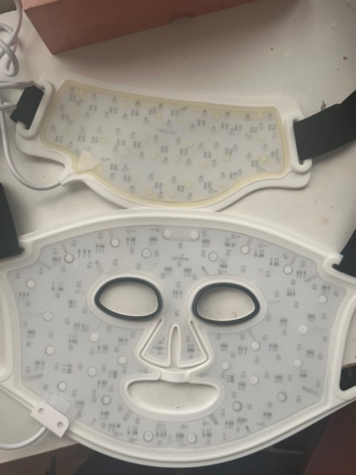 Cześć, moja maska przyszła żółta, a w porównaniu do tej do twarzy, ta do twarzy jest całkowicie biała i czysta. Nasza maska na szyję wygląda dość używanie i stara, przycisk nie świeci również tak mocno jak ten do twarzy i wydaje się prawie zepsuta. To prawie tak, jakbyśmy dostali używaną maskę, a dostaliśmy ją wczoraj. Czy to normalne, a produkt jest po prostu inny niż maska do twarzy, czy powinniśmy to reklamować i dostać nową? Nie używaliśmy jej w ogóle, więc uważam, że to dziwne, że wygląda tak, jak wygląda.