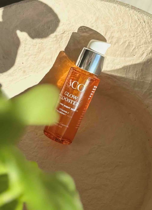 ACO Glow Booster är ett högkoncentrerat och effektivt vitamin C-serum som minskar matthet, ökar lystern, tillför fukt, jämnar ut hudtonen och minskar pigmentfläckar. C-vitamin, som är en kraftfull antioxidant, skyddar också huden från att skadas av fria radikaler. Dessutom innehåller serumet enzymet papain, som är milt exfolierande och tar bort döda hudceller. Resultatet är en fräsch lyster och mjukhet som håller i sig över tid.