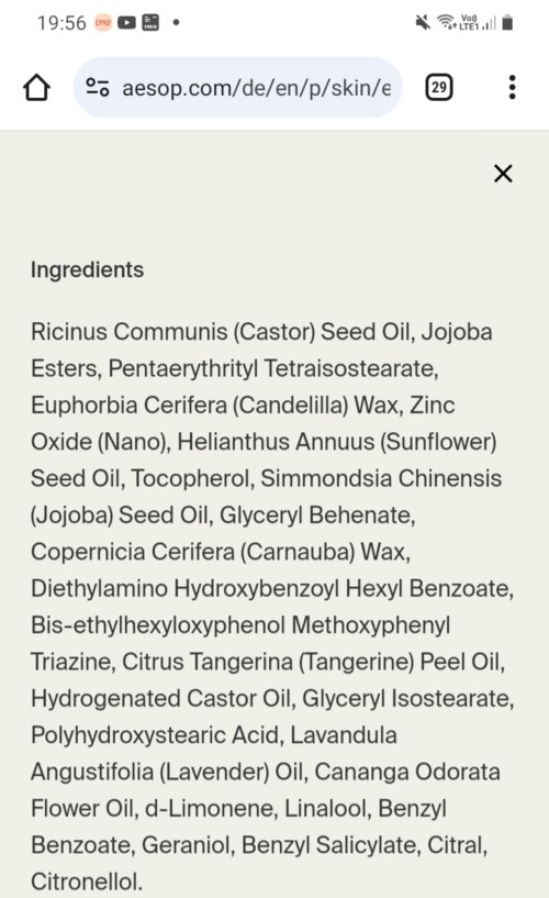 Kan ni sätta in innehållsförteckningen och att detta cerat har sf 30, tack? INCIN ovan är hämtad från företagets hemsida nu i augusti.