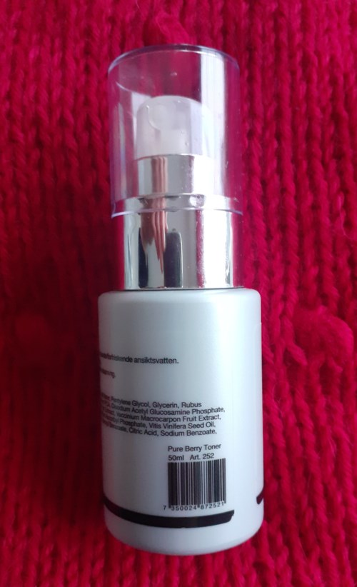 Ett uppfräschande och återfuktande ansiktsvatten som ger huden ett optimalt skydd mot fria radikaler. Pure Berry Toner är fylld med naturliga och välgörande vitaminer från hallon, vindruvor och granatäpple som effektivt förebygger förtida hudåldrande. Fina torrhetslinjer och ojämn hud-ton motverkas aktivt av bland annat Glucosamin, Tripeptider och Vitamin C. Aloe vera, Allantoin och Sodium PCA verkar svalkande, återfuktande och lugnande.