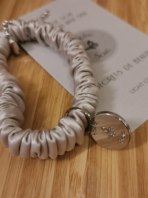 Använd inte Mini Silk i fuktigt hår eller tillsammans med stylingprodukter som kan fläcka materialet. Arrangera flera i ditt hår för en lekfull och personlig stil, eller bär dem som armband för en elegant touch.