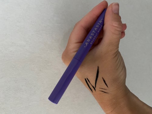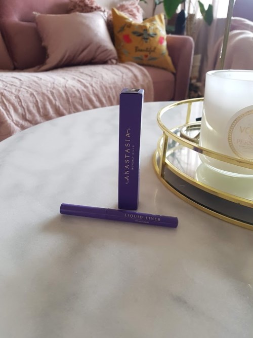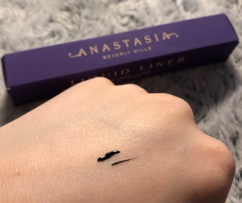 När jag använde den här eyelinern för första gången tyckte jag att den var super svart och ganska lätt arbetad. Jag tycker att spetsen är lite för hård, men efter några användningar är den lite mjukare. Den är flexibel vilket är super bra. Den torkar väldigt snabbt och det är ju bra så slipper man vänta så länge. Det är typ som ett tuschpenna material som spetsen är gjord av. Den blir matt en inte torr så att den krackelerar eller faller ned under ögonen. Jag har inte ögon som rinner, så jag tänkte att jag skulle testa om den var vattenfast. Jag gjorde flera streck i olika storlekar på handen och droppade sedan lite vatten på dom utan att gnugga eller någonting. Det bara rann av så den är absolut inte vatten fast. När man målar eyelinern så ”blöder” den inte ut i linjerna vilket är ett plus. Förpackningen är super fin lila och ser lyxig ut vilket jag älskar. Den luktar inte heller något utan bara som en vanlig eyeliner. Den sitter på hela dagen, och faller inte med under ögonen eller något utan den är som den var från början. Men om du har rinniga ögon vet jag inte om denna kommer funka för dig, eller om det regnar ute tyvärr. #Lykoinflutester #anastasiabeverlyhills