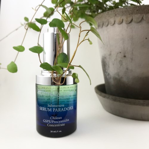 Sumbmersive Serum Paradoxe är ett underbart serum, baserat på två biologiskt aktiva ingredienser, Resvertrol och Procyanidin. Serumet reducerar synligheten av mindre skönhetsskavanker, minskar ålderstecken och reducerar rodnad.