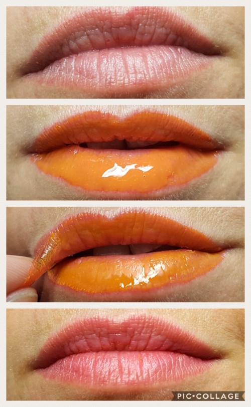 Soft resultat som kommer att bli fint med ett transparent gloss över. Efter att ha tittat på en del YouTube-videos o konstaterat att många verkar applicera produkten alldeles för slarvigt tänkte jag att jag skulle minsann vara noggrann. Tjena! Som ni ser på bilderna så visade det sig vara lättare sagt än gjort... 😇 Hur som haver så rekommenderar jag att man tar på ett ganska tjockt lager, sen gäller det att hålla läpparna särade i 10 minuter... Voilà! Angående färgen så ville min kamera ej göra den rättvisa. Produkten ser på bilderna orange ut, men i verkligheten överensstämmer den väl med produktbilden. Färgen på läpparna utan gucket stämmer väl med verkligheten dock. 👄2277 visningar- Användarens roll: Kundtjänst på Lyko.Kommentaren lades 7 årHaha! Men ibland kan det va kul att pilla lite 😉2 gillar