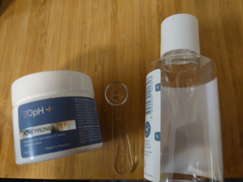 Komplettera gärna med BIOpH Acne prone facial cleanser och BIOpH Acne prone facial moisturizer. Räcker till 3 veckors användning. Använd färdig lösning inom 4 timmar från blandningstillfället.