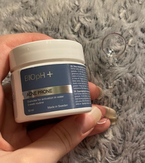 Jag har använt denna BIOpH+ acne prone kit i 3 veckor jag har torr och acne benägen hud, och här är mina tankar om produkten: För att använda denna produkt så fyller man ljummet vatten till valfri markering på plast flaskan. Sedan mäter man upp mängd pulver, häller i flaskan och väntar på att det löses upp eller skaka för att det ska gå fortare för pulvret att lösas upp. Sen häller jag produkten på en bomulls pad och drar över ansiktet, och låter sitta i 30 sekunder innan jag går på med kräm. Jag tyckte att det blev så mycket produkt kvar även om jag bara tog till första markeringen, så jag halverade det en gång. Så alltså till hälften upp till första markeringen och halva puder måttet, och det tyckte jag blev mindre att hälla ut för man kan bara spara den ihop blandade produkten i 4 timmar annars slutar produkten att funka. Huden kan bli lite torr efter att man använt denna, men det räddas upp sen när jag använder fukt kräm. Min hud blev så himla mycket bättre av denna. Jag har fått några enstaka finnar men betydligt mindre. ÄLSKAR den här! Flaskan man har produkten i är i plast och korken är smidig att använda det är bara att trycka på kanten så poppar öppningen upp sedan trycker man bara ned öppningen. Den har en lite konstig doft, men ingen parfym. Jag kan absolut rekommendera denna! #BIOPH #lykoinflutester2852 visningar- Användarens roll: Lyko Creator.Kommentaren lades 2 årSå fin du är och jättebra recension fina foto och video💕😊