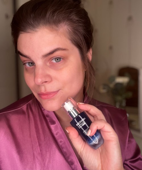 Jag har testat Biotherm blue retinol serum night genom Smartsons Beauty panel. Mitt första intryck var att den är starkt parfymerad, liksom så många andra produkter från Biotherm. Doften är fräsch och påminner om gurka, men alldeles för kraftig för min smak. Eftersom jag inte förknippar parfymerade produkter med aktiv hudvård och inte hittade någon information om styrkan på flaskan tänkte jag att det kanske är en lättare spa-/self care produkt för ovana retinolanvändare. Då min hud är van vid retinol använde jag den varje kväll utan invänjning, men efter tre veckor fick jag så kallad retinol brun (utslag på halsen) och fick pausa användandet i några veckor. Den är alltså mycket potent. Jag upplever att huden får ett fint glow omedelbart efter applicering som varar till morgonen och jag vaknar upp len i ansiktet. Dock är den något tunn och jag behöver ha en kraftig kräm över för att inte bli uttorkad. Jag kommer inte att köpa den igen på grund av parfymen och priset. Det finns bättre och mer prisvärda alternativ på marknaden. + Ger huden glow + Huden känns len + Lyxig förpackning i tung glasflaska - Starkt parfymerad - Dyr - Ser ingen effekt på fina linjer och pigment943 visningar- Användarens roll: Lyko Creator.Kommentaren lades 1 årTack för svar! Köpte min första retinol produkt den ögonkrämen från beauty of joseon, vill avancera lite efter den tagit slut så kanske ska köra på den från dermaceutic då fast 0.5 😄 tack för tips!1 gillar