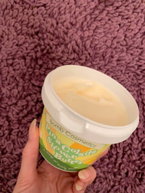 Godbitar som ger ett rent samvete! Shower Butter rengör och mjukgör huden med naturligt vårdande sheasmör. Shower Butter är halvfast vid rumstemperatur för att enkelt kunna appliceras vid dusch och bad. Alla Shower Butter innehåller eteriska oljor med olika egenskaper för att maximera duschupplevelsen. Pina Colada Shower Butter innehåller vårdande sheasmör och eteriska oljor från lime och citron som stimulerar blodcirkulation, är uppiggande och ångestdämpande. Denna shower butter har en fruktig doft av ananas, apelsin, kokos och mandel som kompletteras av söt karamell och vanilj. Använd handen eller en sked för att ta en skopa Shower Butter, applicera precis som vanlig duschkräm. Skölj därefter av med ljummet vatten.