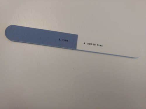 En smart kombination av nagelfil i fyra olika filytor för att slipa och forma naglarna till rätt längd.