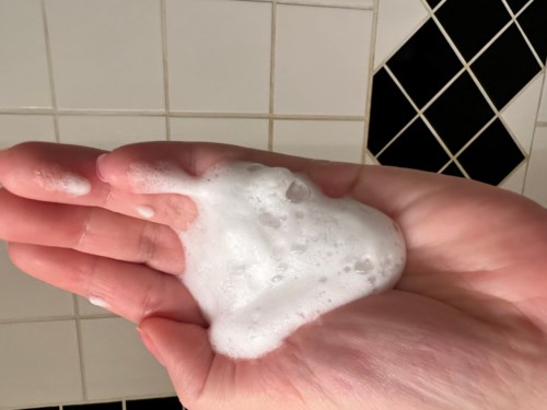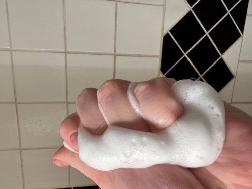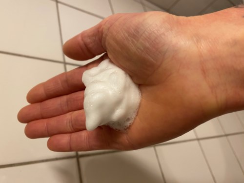 Kliv in i duschen och låt det ljumma vattnet väcka din hud. Pumpa ut en stor (eller flera) klick/ar fluffig mousse och massera in din vackra hud. Glöm inte att blunda och låtsas att du är på spa.
