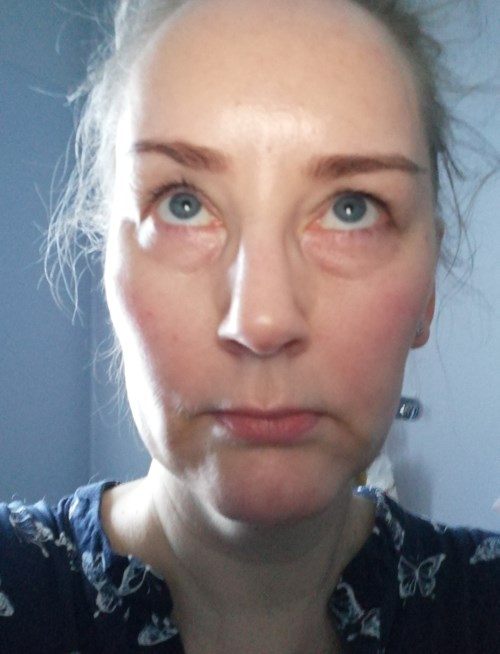 Med djupa blåsvarta ringar, minirynkor och en tendens att sedan något år också vakna med svullet runt 👀 behövs ofta en ögonmask numera! De här guldfärgade ögonmaskerna överraskade positivt👍😃 Hade nämligen provat Lykos andra ögonmask, den svarta som jag inte trivdes alls med så var först tveksam till de här som dessutom innehåller kokosolja; ett ämne min hy avskyr men hyn runt ögonen är annorlunda så chansade och det blev lyckat😊 Släta på ena sidan och med lätt struktur på andra sidan ligger maskerna förpackade i lite väl mycket hermetiskt försluten plast. När man väl lyckats forcera den ✂️ är de lätta att lägga på, jag tog den mönstrade sidan mot huden och omväxlande låg ner och gick omkring i en halvtimme och de satt kvar hyfsat bra - gled bara lite👍 Svag doft, helt ok för min doftöverkänsliga 👃 och 🧠 👍 Efteråt var hyn under ögonen lite slätare och ringarna var visserligen där men jag såg ändå inte lika trött ut 😴 och det var nog för att maskerna också gett lite lyster ✨👏 Påsarna var kvar men försvann när min ögonkräm som jag avslutade med, hade verkat 🕒 😀👍 Om förpackningen görs om så att det blir enklare att få fram maskerna och plasten minskas blir det 5 guldmedaljer 🥇😀 Slutbetyg blir 4 guldmedaljer 🥇🥇🥇🥇👏