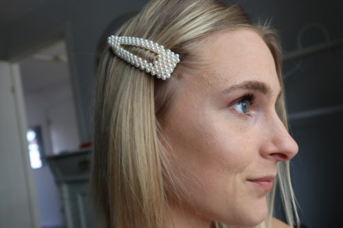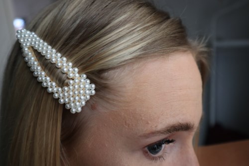 Vackert hårspänne dekorerat med vita pärlor.