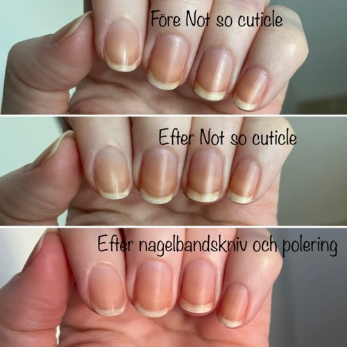 Jag gillar verkligen den här sortens produkter då mina nagelband har en tendens att bli överväxta, så en nagelbandsremover är ett måste ungefär varannan vecka för att efterföljande manikyr ska hålla sig snygg. Den är väldigt enkel att använda: smeta på lite över nagelbanden (det behövs inte alls särskilt mycket), vänta någon minut, använd en nagelbandspusher och peta försiktigt ner nagelbanden. Jag brukar använda en nagelbandskniv och skära bort överflödet också. Snyggt blir det, men framför allt är det enkelt! Så varför ger jag den bara 3 stjärnor? Jo, den fungerar absolut som utlovat - men det finns billigare produkter i samma storlek som fungerar minst lika bra. #LYKO1408 visningar- Kommentaren lades 3 årVad fint det blev! En sån här produkt behöver jag oxå, har samma problem med mina naglar som du 😉1 gillar