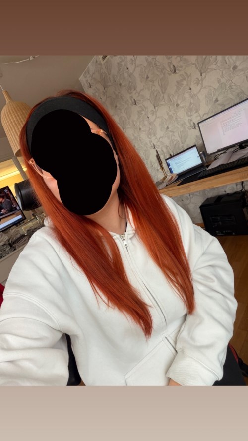 Otroligt imponerad över hur orange den är. Hade blekt och färgat orange/koppar innan men var en väldigt dassig färg och såg ganska ”urtvättat” och nästan mörkblond/kopprigt ut innan. Har inte tvättat någonting än men jag hoppas att färgen håller några tvättar som det står på förpackningen. Isåfall är det med tanke på hur pigmenterad den var, den bästa färgbomben jag provat!998 visningar - Inlägget skapades 1 vecka