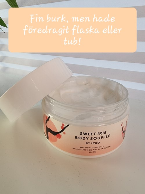 Denna 🌺Sweet iris body soufflé🌺 kommer i en handskar stor förpackning, prisvärd, ljuvlig doft, vegansk och perfekt i konsistensen!! Jag har använt denna I kombination med skrubben i samma serie av LYKO, som är perfekt som en avslut efter scrub. Den är perfekt i konsistensen, inte för tjock och klibbig även om min torra hy behöver det så är den perfekt för mig. Den innehåller Shea butter något jag gillar och använder. Dessutom 100% vegansk, så vad mer kan man önska? Apropå doften, den sprids även över hela rummet. En riktig doftbomb🌺 Förpackningen är perfekt i sin storlek, ogillar tuber och den här går ju dessutom att återanvända:) och för sitt pris och volym är denna topp i prisklass. Kort sagt 🌺 doftbomb 🌺vegansk 🌺hållbar 🌺topp i prisklass Ps. Det skulle bli mer prisvärt om man vill ha hela serien ;) Se HÄR : lyko.com/sv/lyko/lyko-spa-sweet-iris-trio #LykoSPA #Testpilot - Inlägget skapades 3 årBetyg: 4 av 5