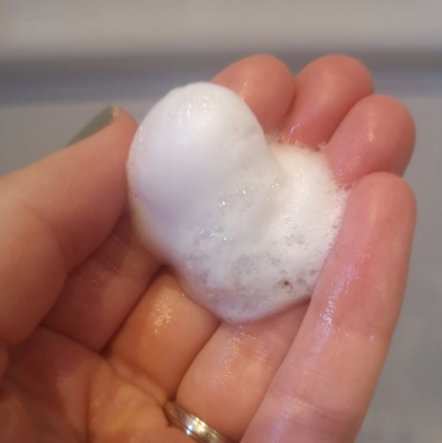 Kliv in i duschen och låt det ljumma vattnet väcka din hud. Pumpa ut en stor (eller flera) klick/ar fluffig mousse och massera in din vackra hud. Glöm inte att blunda och låtsas att du är på spa.