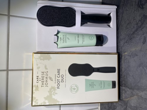 Et presentset från Care by Therese Johaug som innehåller fotkräm och fotfil. Fotkräm: Reparerande fotkräm med sheasmör som återfuktar och ger intensivvård för torra och spruckna fötter och hälar. Krämen tränger djupt in för att ge näring, ta bort ojämnheter och reparera sprickor. Applicera och massera in morgon och kväll på rena och torra fötter. Fotfil: Tar effektivt bort hård, torr och sträv hud. Använd den grova sidan för att ta bort hård hud, använd sedan finare sida för en mjuk och slät finish.