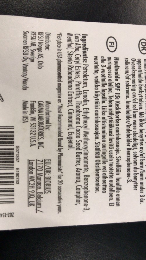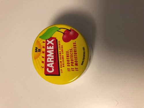 Carmex läppbalsam har en kylande och anticeptisk effekt.