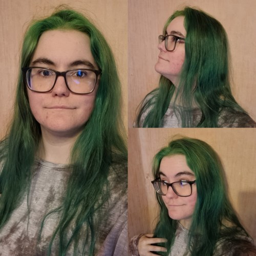 Spring Green i hårbotten/toppen av huvet och Alpine Green i längderna. Jag ville ha Apple Green, men när jag skulle beställa så var den slut. Tänkte blanda dem först, men det blev som ovan. Jag har ganska mörkt hår så jag blekte först med Schwarzkopf Blonde Platinum Lightener Silver Blonde. Jag hade en väninna som hjälpte mig, men Directions färgerna var superlätta att applicera så jag skulle lätt kunna göra det själv! Då de är konditionerande så kändes mitt hår supermjukt efteråt! Försöker använda färger som ska slita så lite på mitt hår som möjligt då jag måste bleka så starkt. Jag skulle säga att färgerna ser ut i verkligheten som de gör på Lyko! Då färgerna är semi-permanenta så kommer de nog att tvättas ur ganska snabbt, så jag ser fram emot att testa mer färger från märket när jag endå har blekt hår! :)1 produkt i inlägget Vill prova mer färger från märket!4445 visningar- Inlägget skapades 2 årSpring Green i hårbotten/toppen av huvet och Alpine Green i längderna.1 produkt i inlägget3764 visningar
