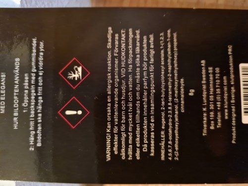 Tror inte jag kommer hĂ€nga den hĂ€r nĂ„nstans efter att ha lĂ€st pĂ„ baksidan, se bild. Farligt avfall etc đł #tĂ€vling1 produkt i inlĂ€gget Luktar OK men varningen pĂ„ baksiden kĂ€nns sĂ„dĂ€r...379 visningar- AnvĂ€ndarens roll: KundtjĂ€nst pĂ„ Lyko.Kommentaren lades 3 Ă„rHej Ann!đ Alla produkter vi sĂ€ljer Ă€r godkĂ€nda inom EU sĂ„ om detta anvĂ€nds som en bildoft / i en garderob / walk-in-closet och hĂ€nger fritt sĂ„ ska det inte vara nĂ„gra problemđ€ Varningstexten Ă€r till för att förtydliga att den ska sorteras som miljöfarligt avfall nĂ€r den ska kasseras†Ha en fin fredag!đ1 gillar