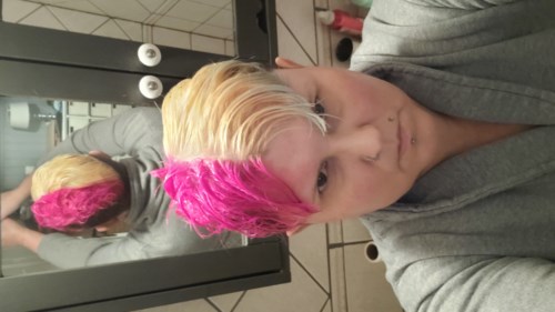 har laddat upp en ny profilbildInlägget skapades 8 månader9 visningar- Kommentaren lades 8 månaderFörst klippning hos frissan Och sedan leka frisör på sig själv. 1.Blekning 2.rosa /lila 3.mörkbrunt på sidorna och runt om . Directions färger