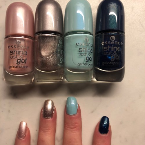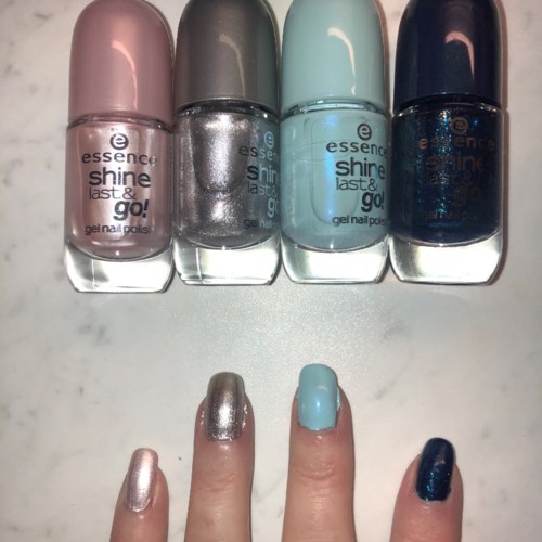 Från vänster: 06 Frosted Kiss, ljust rosa med pärlemor- mycket lättmålat och torkar fort. 28 Razzle Dazzle - mycket glittrigt utan att vara glitter. Supersnygg färg som kan bäras till viken look som helst. Även det lättmålat med hög täckning. 35 Take Me To Heaven - den mest svårmålade av dom jag har provat. Kräver flera lager. Jag har målat två lager på bilden och det täcker inte helt. Det är ett blått skimmer i detta lack men tyvärr syns det dåligt på nageln. 32 City of Stars - riktigt mörkt med mycket glitter i utan att vara som ett rent glitterlack. Lätt att få bort. Lättmålat och snabbtorkande.1 produkt i inlägget Fler Essence nagellack7499 visningar- Kommentaren lades 5 årVilken bra sammanfattning! Hjälpte mig mycket, och hade nog inte övervägt 32 City of stars annars. Tack!2 gillar