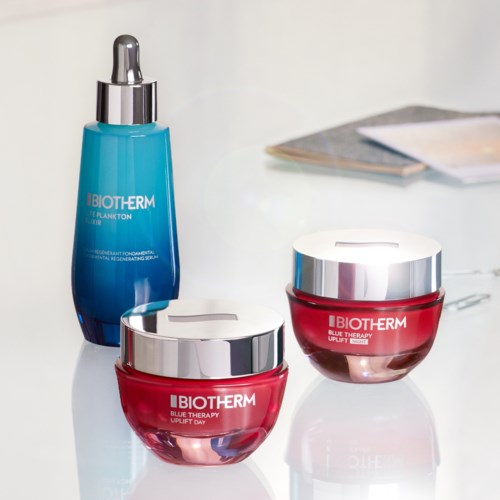 - Inlägget skapades 4 årFrån 25-årsåldern försvinner ca 1 % kollagen per år från huden och ansiktskonturen blir mindre definierad. Vilket blir att huden känns slappare med minskad elasticitet. Blue Therapy Red Algae Upift Day är en uppstramande och fuktgivande dagkräm. Cremen förbättrar hudens elasticitet och fasthet med hjälp av kollagenfraktion-peptider och extrakt av den röda algen rodophycea, som skördas längs med Altantkusten. Blue Therapy Red Algae Uplift innehåller även Biotherms regenererade signaturingrediens Life Plankton™ probiotiska fraktioner av naturligt ursprung. För bästa resultat använd Blue Therapy Red Algea Uplift nattcrème under kvällstid som vårdar och skyddar huden mot fukförlust efter Life Plankton Elexir, som förbättrar och stärker hudkvalitet. Innehåller 5 % Life Plankton probiotiska fraktioner och fuktgivande hyaluronsyra och C-vitaminkomplex som ger lyster. * Blue Therapy Red Algae förpackning är framtagen med miljöhänsyn består av ett 100% återvunnet och återvinningsbart plastlock, en 25 % återvunnen och återvinningsbar glasburk samt en låda utan cellofan. lyko.com/sv/biotherm/biotherm-uppstrama-utjamna-och-lyster-serum-anti-age-creme lyko.com/sv/biotherm/biotherm-blue-therapy-natural-lift-cream lyko.com/sv/biotherm/biotherm-life-plankton-elixir-fg-50ml
