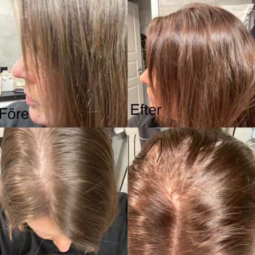Enkel applicering, var väldigt enkel att massera in i längderna. Blev knappt något kladd alls o det lilla man fick på huden var enkel att tvätta bort med lite schampo på en bomullsrondell. Plus för att den inte luktade så skarpt. Samt täckte de gråa hår jag samlat på mig. Man fick en härlig glans som höll i sig även efter ett antal tvättar.1 produkt i inlägget Bra toning612 visningarCarolina