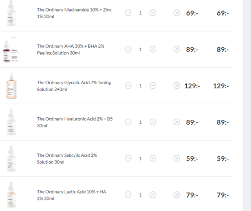Hej, Jag är intresserade av dessa produkterna och undrar lite hur jag skall gå tillväga när ja ska använda dem? Är det några som inte funkar med varandra? Så svårt! Tack för hjälpen!1 produkt i inlägget Carro1007 visningar- Användarens roll: Hudterapeut på Lyko.Kommentaren lades 6 årHej Emma, det finns tyvärr ingen rengöring i The Ordinarys sortiment. Det finns en fuktkräm som går att använda både morgon och kväll, den finner du här: lyko.se/the-ordinary/the-ordinary-natural-moisturizing-factor