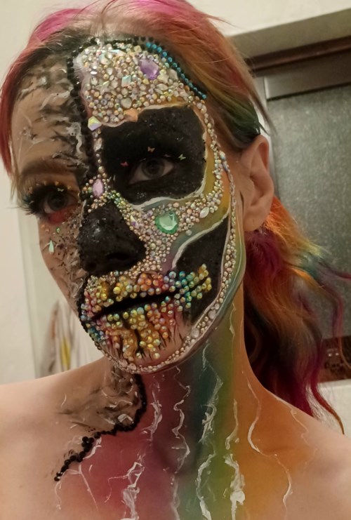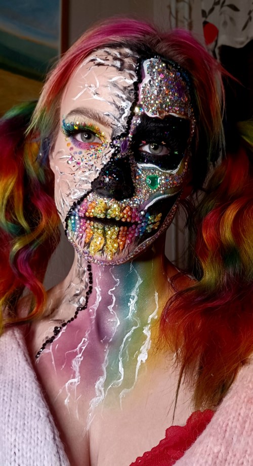 Slår till med ett litet bidrag till, en look jag velat göra länge men inte blivit av. Tänkte göra hela ansiktet först, men det fanns inte en chans att jag skulle orka det i hela fejjan, så körde halva istället som tog bara sådär 8 timmar isch 😅 Har använt alla möjliga storlekar på stenarna, man skulle göra det lätt för sig, eller hur va de nu igen 🤣 Men det var sååå värt alla timmar, svett o tårar 🤣😭🤣 Det var jättekul att göra denna sminkning, men inte sista timmen haha! Dessutom blev resultatet bättre än vad jag tänkte. Och det är så mycket tack vare er jag utvecklas hela tiden. Även om jag inte är så aktiv så är ni alla med i mitt hjärta. 🖤Stor kram och var rädd om er🖤 #halloween22 #nyxprofessionalmakeup12 produkter i looken 💀🌈Rainbow glitter skull🌈💀3101 visningar- Användarens roll: Lyko Creator.Kommentaren lades 2 årHelt otroligt vad begåvad & vacker du är!! 😍 Så fantastiskt! ✨2 gillar