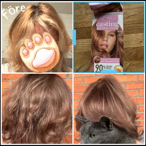 Omg, loreal casting 823, vilken räddning! Från misslyckad orange hemmagjord "balayage" till normal hårfärg😅 Färgen är mörkare än vad som kan förväntas av nivå 8, och mörkare/kallare än på förpackningen, så jag förstår alla missnöjda blondiner...Men jag ville ha just mörk naturlig cendre-blond, och det fick jag:) Inga gröna nyanser, alla oranga och vita slingor jämnades ut. Täckte även gråa hårstrån på utväxten. Färgen är nästan samma som 723, så den är närmare mellanbrun än blond. 823 är min nya favorit:)1 produkt i inlägget Loreal casting 8235587 visningar- Kommentaren lades 3 veckorJag har jämfört med färgkartor, och jag är ganska säker att det är nivå 7. Också har jag haft blond hår nivå 8 i många år, och det var ljusare. Det kanske är nyanseringen på tonen som gör den mörkare... Men det gör inget, jag gillar färgen ändå.