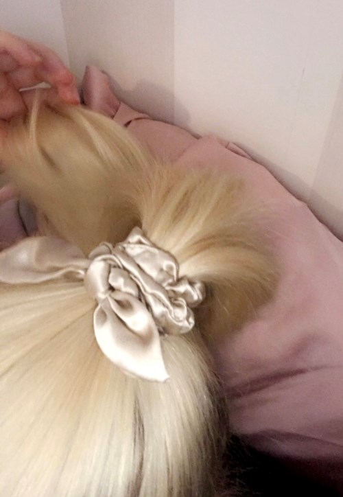En Jättefin scrunchie i följsamt siden och fantastiskt lyster. Siden är verkligen att rekommendera som substitut till den vanliga Hårsnodden som gärna resulterar i avbrutna hårstrån. Denna sitter fint och skonsamt kvar på huvudet i både låg och hög tofs. #tävling1 produkt i inlägget Fin och skonsam!824 visningarCelia