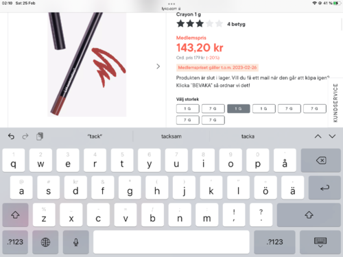 Har testat alla färger av de här snoddarna och de rosa tappar formen och blir som långa tuggummin. Hela grejen är att de ska hålla formen så man kan sätta uppe håret o inte oroa sig för att tofsen glider ner. Rekommenderar clear, svart eller brun ist för dessa.1 produkt i inlägget Rosa är sämre än de vanliga1132 visningar- Användarens roll: Kundtjänst på Lyko.Kommentaren lades 2 årHej Charlotte! 🥰 Aj då, det var ju inte bra att de rosa inte håller formen. 🤔 Du får gärna registrera en reklamation på Mina sidor ➡ Orderhistorik ➡ Reklamera om de är defekta så kikar vi vidare. 📧 Det verkar annars som att de andra färgerna funkar bra enligt din rekommendation. ✨ Ha en bra dag! 🌷1 gillar