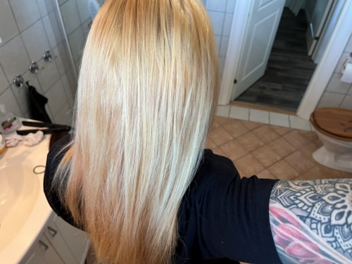 Jag har velat vara mörkblond ett bra tag men ja, jag har haft brunt hår med många röda toner kvar även från när jag var rödhårig. På ena bilden är mitt hår innan blekningen, hade inte tonat håret på ca 2månader. Använde mig av 2 förpackningar blekning & blev så förvånad över hur bra den tog! 🙏🏽 Tog sedan en askig blond toning i & fick resultatet jag önskade. Trodde aldrig man kunde få sån färg hemma utan att gå till frisör (på första försöket dessutom)! Håret blev inte slitet, torrt blev det som man tänkte att det skulle bli men jag hade hårinpackning mellan blekning och toning. Rekommenderar 🤩1 produkt i inlägget Så himla bra!9906 visningar- Kommentaren lades 2 årJag har för mig att jag hade den i 20min, men är inte säker! Jag följde anvisningarna i förpackningen 😊1 gillar