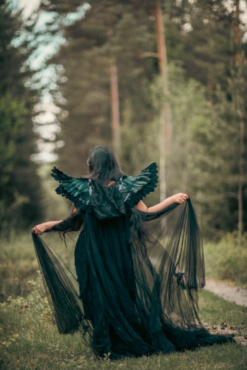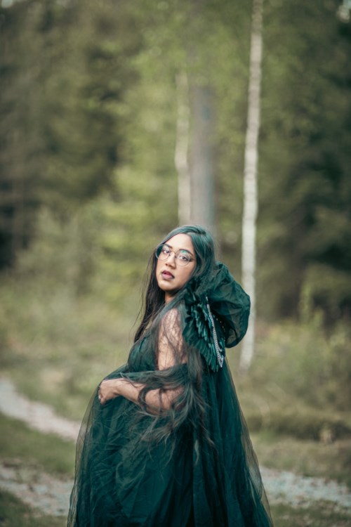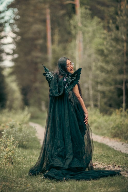 Jag och min man tog några kort tillsammans. Tanken var att skapa en gotisk stämning med inspiration från "Det Levande Slottet", Studio Ghiblis filmatisering av boken. Min man var så otroligt stilig men jag får dessvärre inte dela bilderna med honom så jag delar enbart de med mig. Till denna sagolika utstyrsel ville jag ha en mörk sminkning som sticker ut men inte tar för mycket uppmärksamhet från klänningen och vingarna. Jag valde därför mörka bruna nyanser samt sotning mot svart både på ögonen och på läpparna. För att ändå framhäva blicken något la jag till lite vit eyeliner. Ej länkade produkter: Rare Beauty - Liquid Touch - Weightless Foundation (360W) Tarte - Shape Tape Concealer (36S Sand) Jeffree Star Cosmetics - Velour Lip Liner (Weirdo) Jeffree Star Cosmetics - Velour Liquid Lipstick (Weirdo)18 produkter i looken A little ravenMoumita