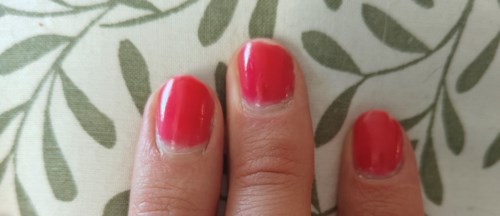 För det första vill jag säga att jag trodde att färgen på "15 Full blown" skulle vara mer klarröd. Den ser ganska röd ut i flaskan, men på handen är den betydligt mer rosa. På hemsidan ser den röd ut också då jag var lite besviken över att den var rosa, men om du gillar en klar, stark rosa med röda toner så kan detta vara färgen för dig. Jag testade att använda den utan andra produkter. Inget base- eller topcoat, bara två lager av nagellacket och jag känner mig positivt överraskad. Bilden är från dag 6 där det har varit daglig användning inklusive dusch, handdisk, städ mm. Några små chips har försvunnit men förvånansvärt få med tanke på att jag inte satte på några skyddande lager. Det är en väldigt transparent formula så två lager minimum behövs för täckning som inte är streaky. I övrigt torkade den rött snabbt, men precis som andra nagellack kan den rynka sig om man råkar lägga tryck när den är torr vid beröring men inte helt torr rätt igenom. I övrigt en produkt som var betydligt bättre än jag trodde! Recensionen genomfördes på uppdrag av Smartson - testpiloten har fått prova produkten kostnadsfritt.1 produkt i inlägget Håller förvånansvärt bra53 visningarSarah