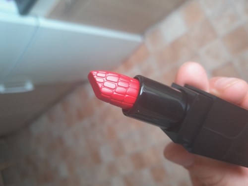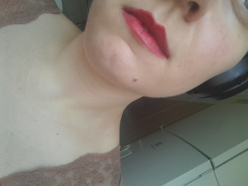 Färgen är rätt kall, röd men en aning åt det lila/rosa hållet. Den är hyfsat pigmenterad, men det kunde varit bättre. Den är väldigt krämig och sitter okej, (den kommer definitivt behöva bättras på under dagen)1 produkt i inlägget Fin färg3631 visningar Ebba