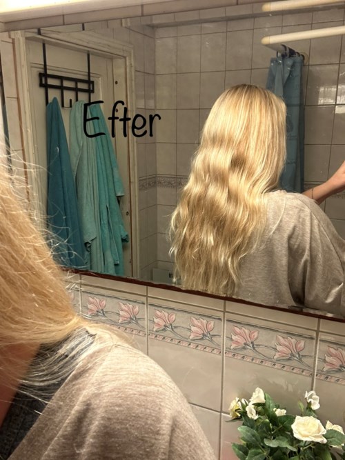Har blekt ca 10cm utväxt som blev gult. Men det hade jag räknat med. Denna toning räddar utväxten och smälter in fint med den gamla toningen i längderna. Så supernöjd ! En fin dämpad blond nyans.1 produkt i inlägget Äntligen nöjd !4566 visningar- Kommentaren lades 6 årOj , så guldigt är inte håret IRL. Ljuset måste påverka. Det är kallt. Beige .