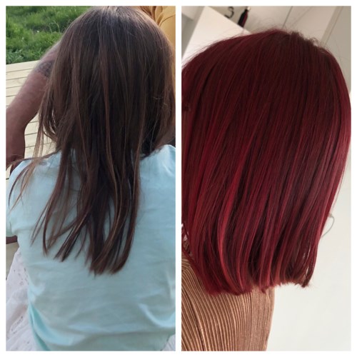 Bra inpackning om man inte vill färga håret med bra pigment. Detta är bild före och efter på helt ofärgat hår direkt efter färgning med röd inpackning. Sätter i schamponerat och torrt hår, avslutar med att skölja ur och balsam. Håller några veckor men tvättas ur eftersom. Räcker ganska många ”färgningar”1 produkt i inlägget Bra om man inte vill färga, bra pigmentElin