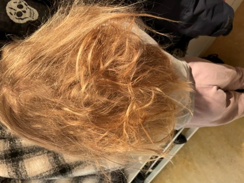 Doftar gott och gör dotterns hår lätt att kamma ut. Såhär på bilden ser hennes hår ut 9 av 10 gånger när hon vaknar. Så ni kan ju tänka er, men går att kamma ut utan skrik med denna balsam😆1 produkt i inlägget SuperElin